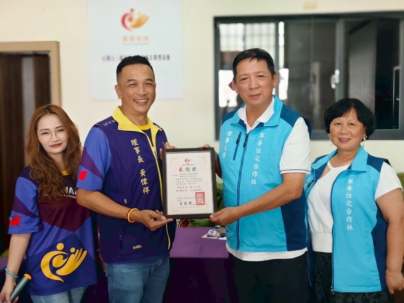 黃偉祥理事長(左2)致贈感謝狀 由吳孝育理事主席(右2)代表 圖/曾雅莉