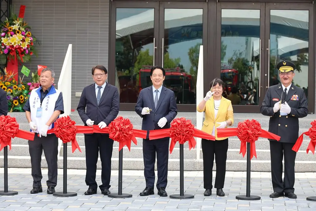 王瑞德副縣長與總統賴清德、總統府秘書長潘孟安、內政部部長劉世芳、環境部次長葉俊宏、消防署署長蕭煥章等貴賓,共同剪綵及揭幕