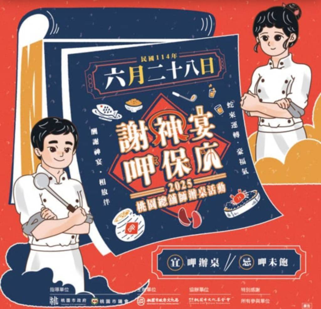 新永和市場停車場將於6月28日席開「謝神宴」,總鋪師發揮拿手絕活,推出融合桃園在地食材與傳統工藝的辦桌佳餚,邀民眾一同「呷保庇」!豐盛菜色不僅是對神明的感謝,也象徵社區情感連結與祝福。這場盛宴展現閩南飲食文化的深厚底蘊,重現鄰里共桌的溫馨情景,凝聚在地情感,展現道地美食實力。