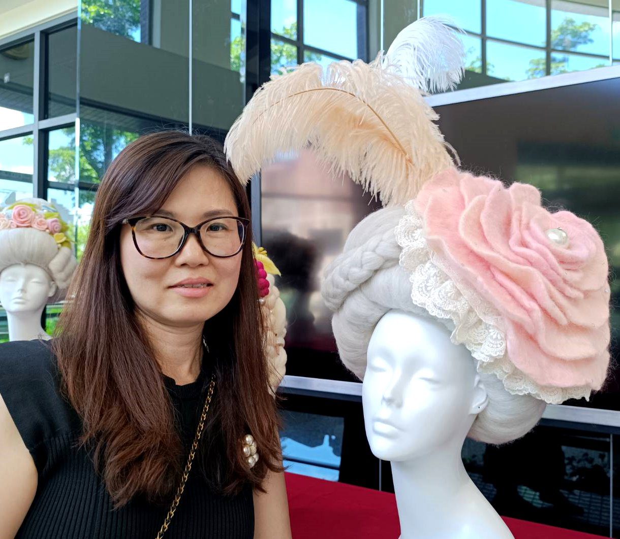 「洛可可的瑰麗年代」創作以羊毛氈材質呈現洛可可風格的髮型與頭飾,突顯華麗優雅的十八世紀貴族氣息,整體髮型結構高聳,融合大型側編辮、層層盤繞的捲曲造型,精緻模仿貴族女性標誌的豐厚假髮輪廓,充分結合傳統與創新,將柔軟的羊毛氈媒材轉化為歷史風格的視覺盛宴。