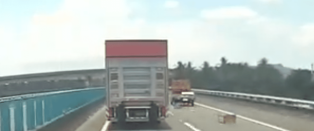 【賴傳媒、記者爆料網/周庭慶/高雄報導】民眾上傳Threads一段行車紀錄器影片,內容是昨(24)日行經國道10號西向24K左右路段,前方1輛貨車上載運的木製桌椅突然掉落路面,險些砸中後方車輛,網友回應:「這種沒綁好的真的要加強訓練 這個其實非常危險!這個是運氣好」、「後面貨車根本神預判」、「還好有切進來,不然真的要坐椅子了」