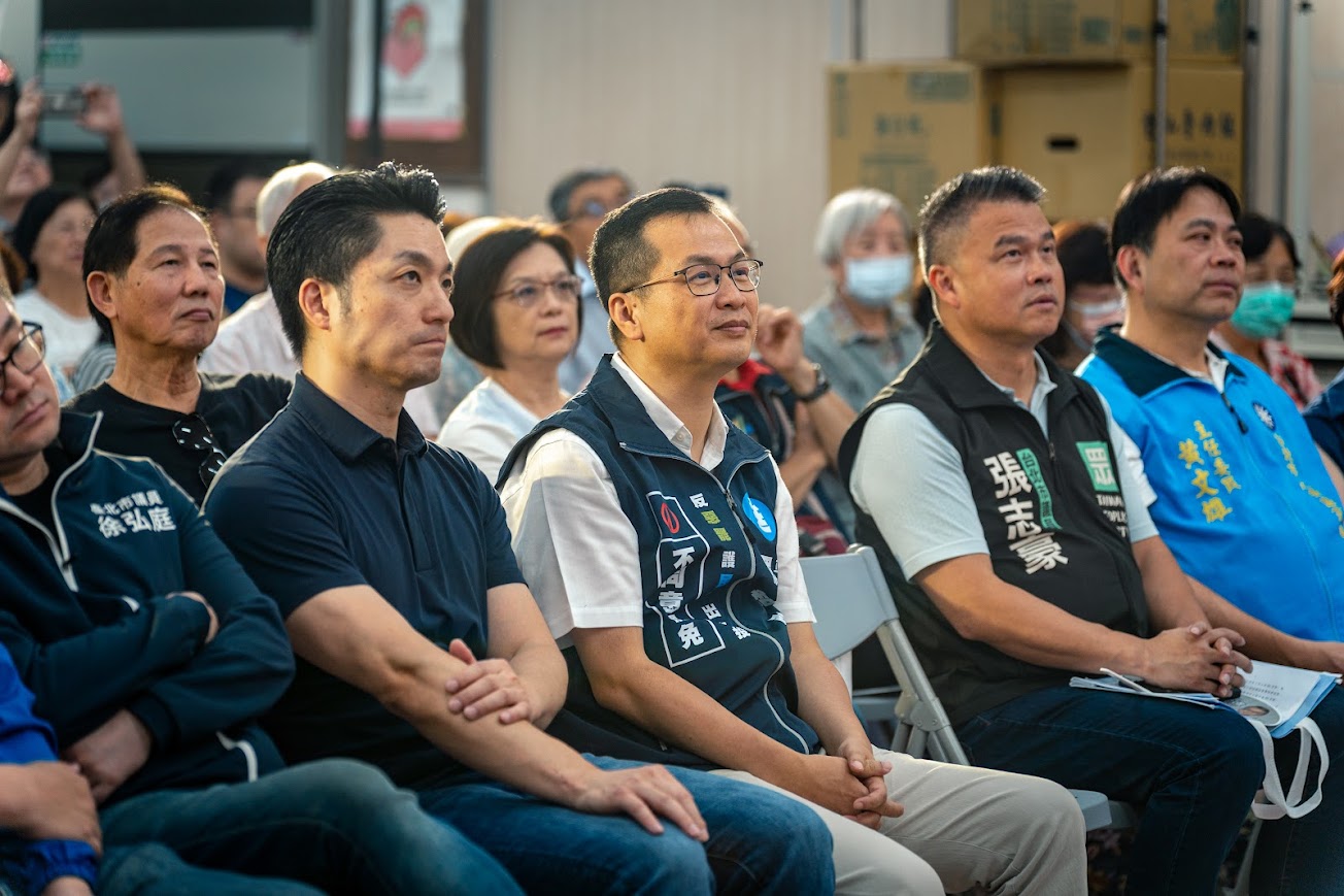圖說:台北市長蔣萬安、國民黨秘書長黃健庭、立委謝龍介及民眾黨張志豪等人親自到場聲援,強調羅智強是監督民進黨的重要戰力,7/26 要投下不同意罷免票。圖/羅智強辦公室
