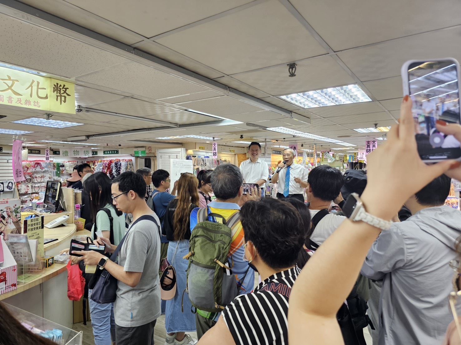 蘇俊賓隨後也與藍源德等人在諾貝爾圖書城進行巡禮,絡繹不絕的人潮也展現出書店的高人氣,趁著最後一個月的營業時間再來採購與找尋回憶。蘇俊賓等人也在現場發送諾貝爾圖書城的紀念圖卡,正面是由蘇俊賓手繪的書店透視圖、背面則是印製桃園城市書頁座標,登載各獨立書店的分布地圖與資訊,讓桃園獨立書店群這個新的文化圖書空間可以接續傳承。