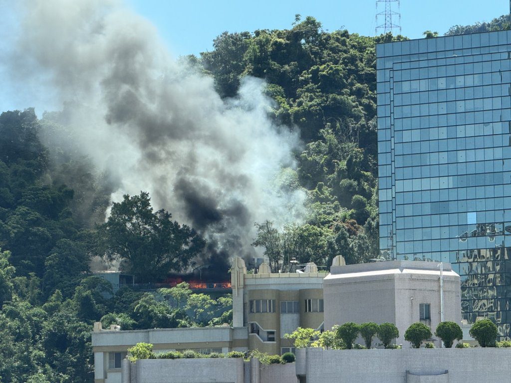 ▲台北市信義區象山上的全真東華觀,今(1)日9時許傳出火警,大量黑煙自山區竄出。(翻攝畫面)