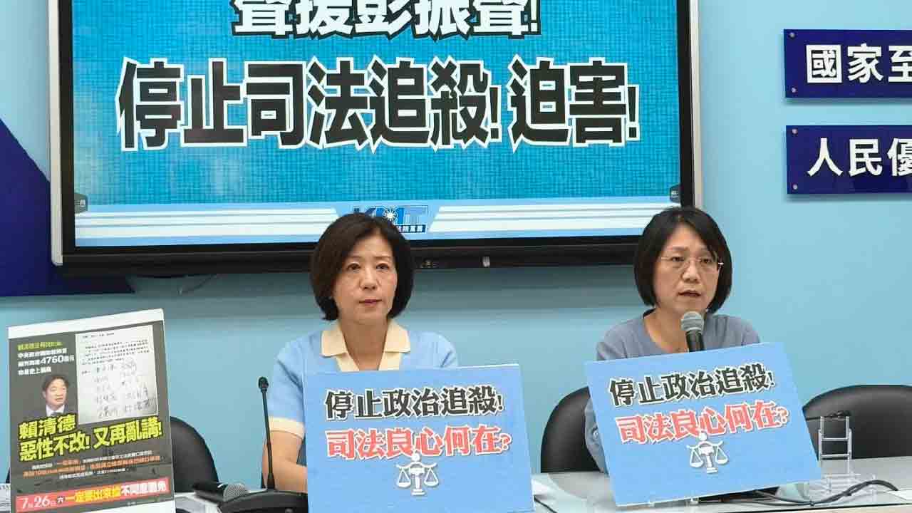 針對台北市前副市長彭振聲1日出庭前痛失妻子並情緒崩潰,國民黨立院黨團今(2)日上午召開記者會,譴責檢調對彭案及相關案件的處理方式,已嚴重偏離司法正義,呼籲停止政治追殺、反對國家機器濫權。