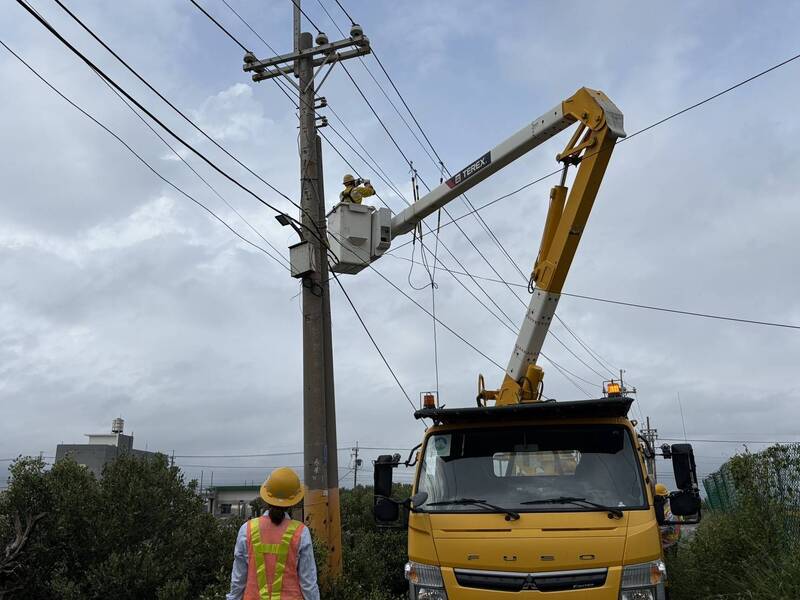 ▲台電台東區處人員在永安區永達路上協助搶修  圖/台電高雄區處