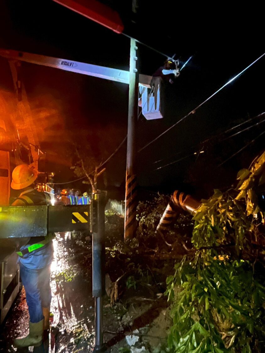 圖/台電在入夜後持續不眠不休搶修