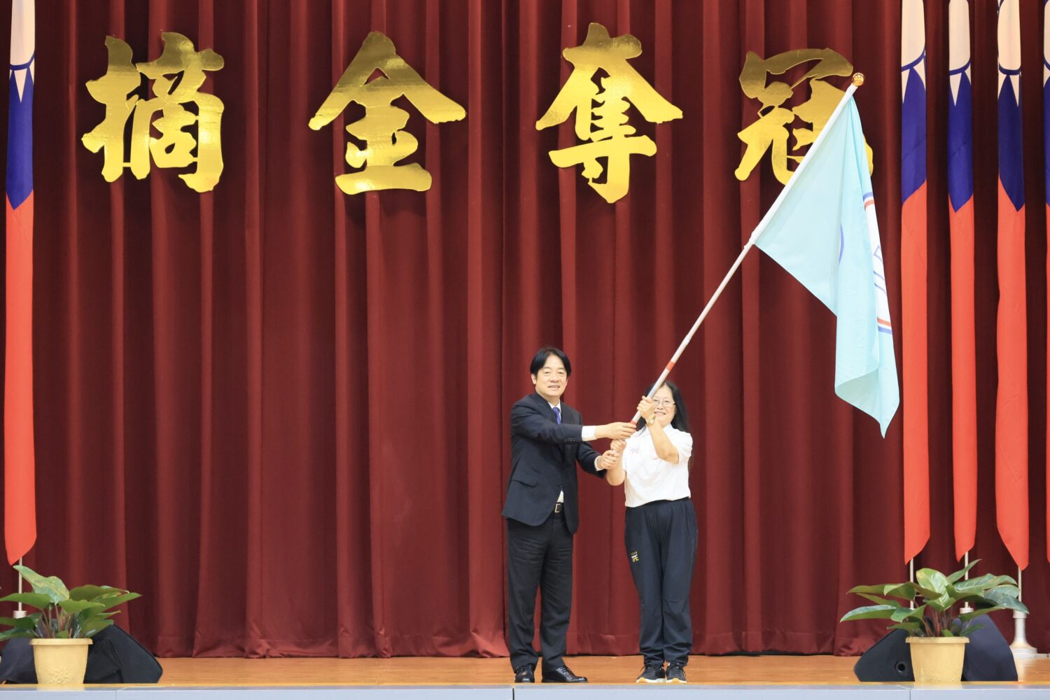 圖/ 高雄市長陳其邁陪同總統賴清德出席2025德國萊茵魯爾世大運代表團授旗典禮,一同為選手加油打氣,也請全體國人共同為世大運參賽選手加油。