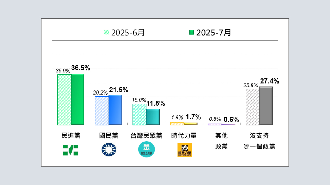 政黨支持度方面,民進黨37%、國民黨22%、民眾黨12%,中性選民27%;值得注意的是,藍綠兩黨對峙下,小黨支持度明顯被邊緣化。民調同時指出,66%民意支持法庭直播立法,成為少數獲得高度共識的議題。