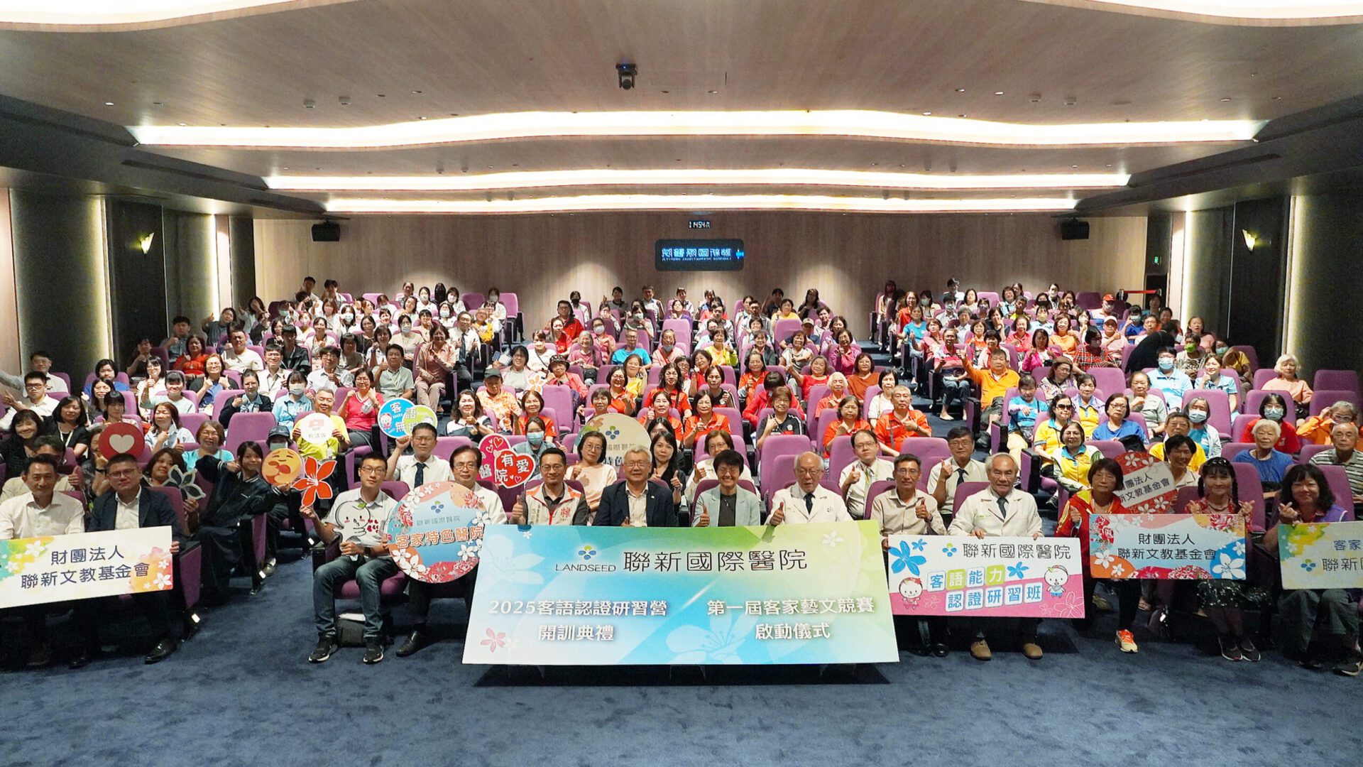 聯新國際醫院於今(17)日舉辦「2025年客語認證研習營開訓典禮暨第一屆客家藝文競賽活動啟動儀式」,在客家委員會主任委員古秀妃、語言發展處處長吳克能、科長徐正翰、桃園客事局文教發展科科長陳建旻、桃園市客家事務局長范姜泰基、聯新國際醫療集團創辦人張煥禎、聯新國際醫院院長許詩典、名譽院長廖文山、名譽院長黃忠智等貴賓的共同見證下正式展開。此次研習營吸引來自醫務部、護理部、醫技部、行政部、聯新國際醫療集團及聯新志工大隊等超過120位員工報名參加,創下歷年新高,展現全院推動語言友善醫療的高度共識與行動力。