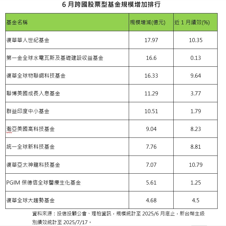 另外,基礎建設類的第一金全球水電瓦斯及基礎建設收益,以及PGIM保德信全球醫療生化基金,也吸引資金轉進。