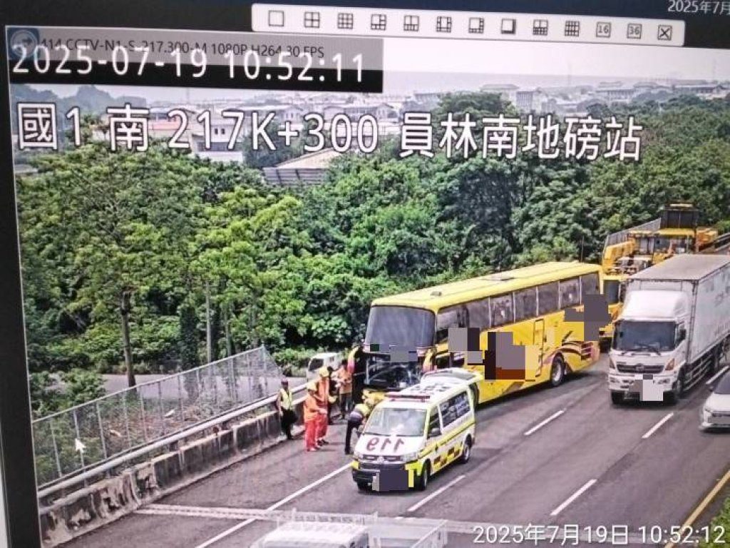 國道遊覽車撞人!  事故處理班人員排除掉落物遭撞傷