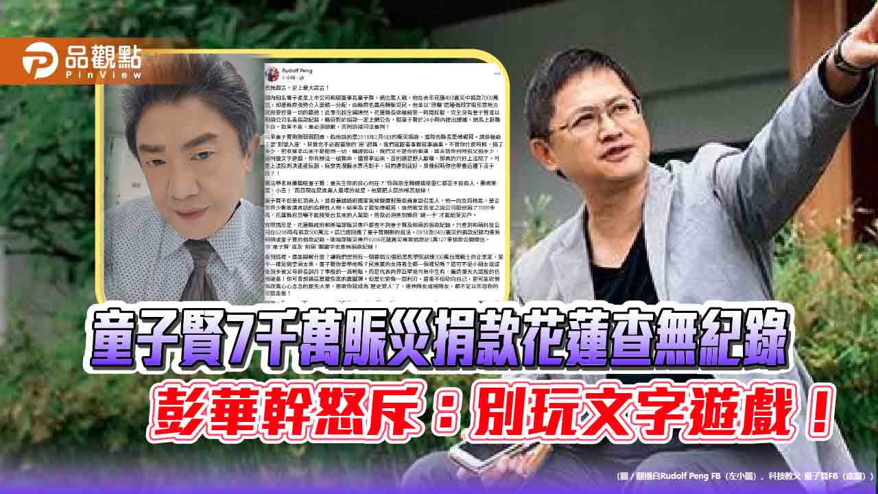 和碩聯合科技董事長童子賢自爆他個人及公司捐出七千多萬元賑災花蓮,卻被縣政府納為己有。花蓮縣長徐榛蔚昨(23)日嚴正駁斥,要求童子賢拿出證據,縣府也清查7年前0206震災曾收到和碩500萬元善款,但2022年0918地震及去年0403地震,未再收到童子賢捐款。今(24)日童子賢說是2018年2月6日的賑災捐款,當時縣長是傅崐萁,請徐榛蔚不要對號入座。對此,資深媒體人彭華幹直言,把捐款收據拿出來就是鐵證如山讓人一槍斃命,不要玩文字遊戲,否則就是「史上最大謊言」!