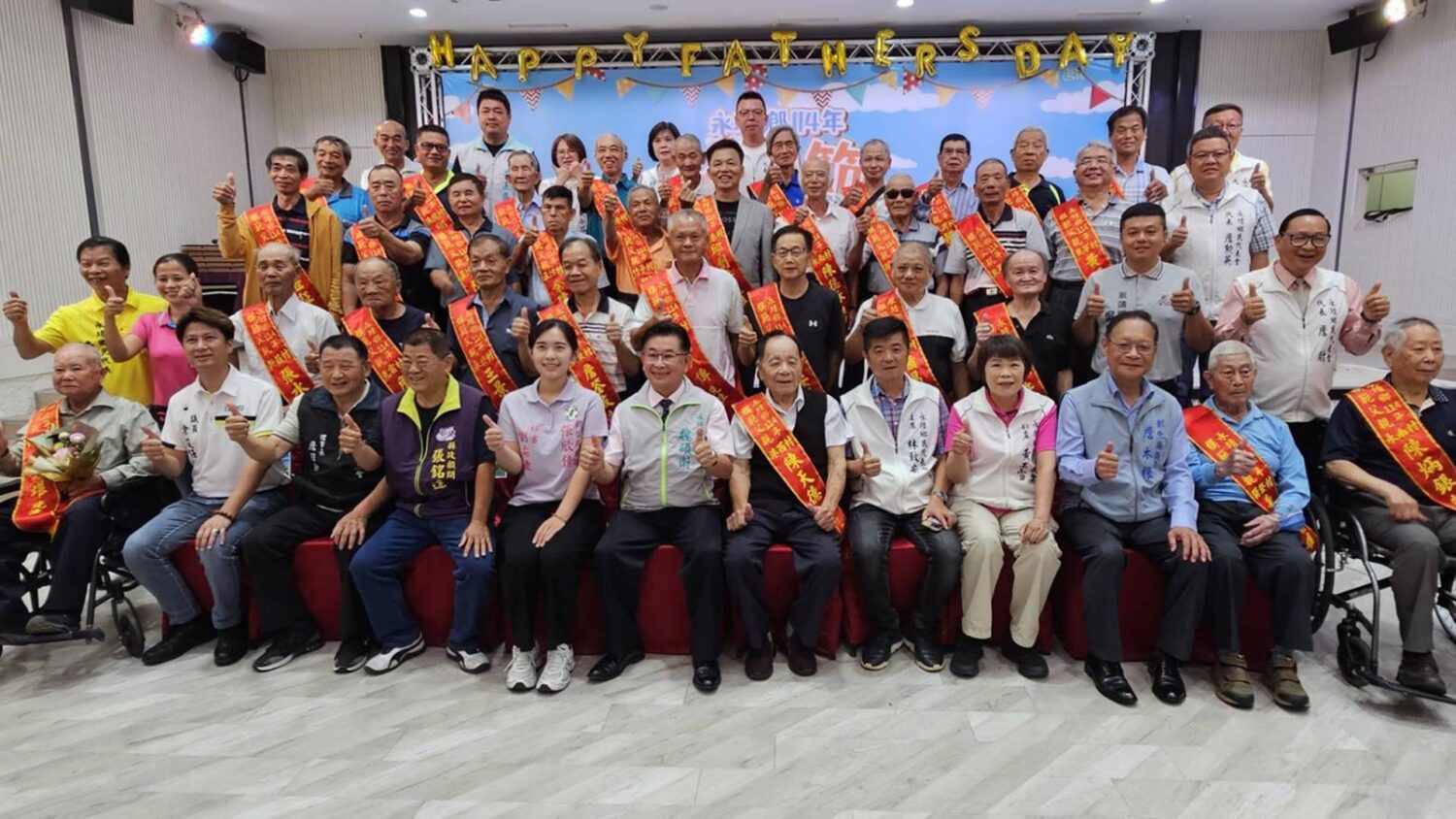 永靖鄉公所特別準備實用禮品(折疊躺椅)贈予模範父親,並準備迎賓小禮贈送給與會嘉賓,開啟喜悅的一天,並設置主題背板,供嘉賓拍照留念,領取打卡禮;讓與會者在愉快的氛圍中享用美食及欣賞精彩的才藝表演,歡度溫馨快樂的佳節。