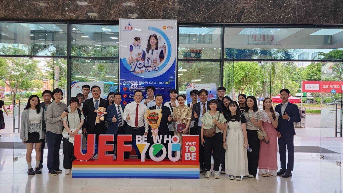 首圖/亞大校長蔡進發(前排左7),帶領亞大同學參訪越南胡志明市財經大學。(圖/亞洲大學提供)