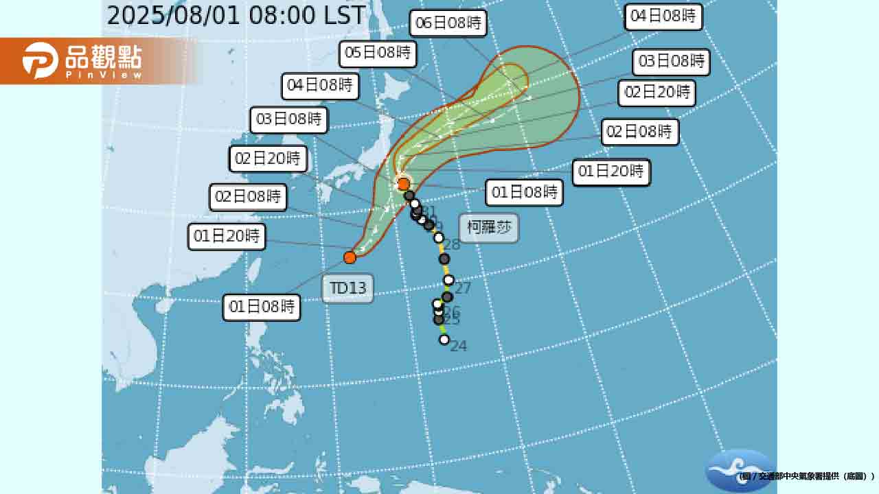 中央氣象署今日發布最新氣象預報,指出位於台北東方約1200公里處的第13號熱帶性低氣壓已於今日上午生成,預計在未來24小時內有機會增強為今年第10號颱風白鹿。氣象署預報員表示,白鹿颱風預計將跟隨輕度颱風柯羅莎的路徑,朝日本東南方海面前進,對台灣並無直接影響。