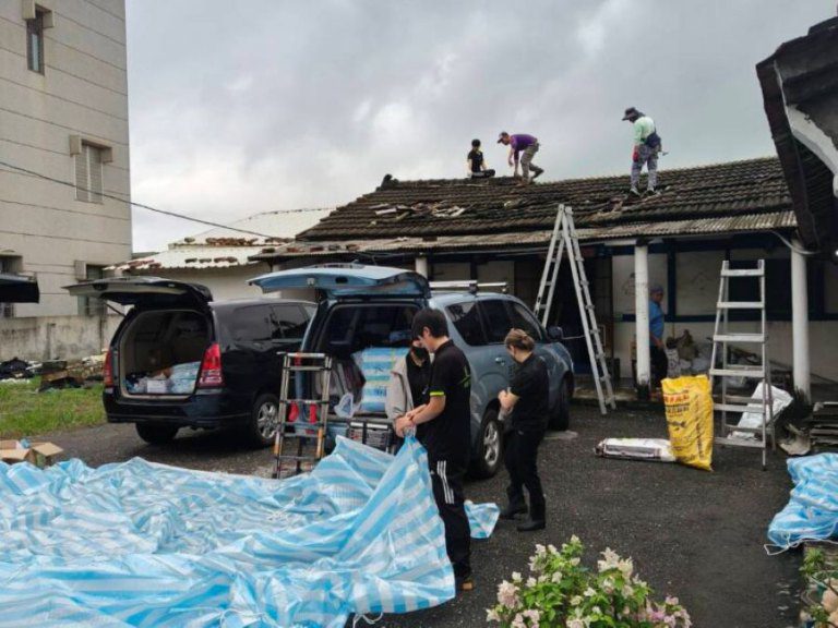 嘉義台南重災區,不少高齡住戶至今屋頂仍等不到人修繕,台中萬豐設計工程裝修公司老闆趙晉潁看不下去中央還有縣市政府效率太慢,號召員工師傅組救災團,南下重災區,帶了500件帆布免費幫忙修繕屋頂。希望趕快幫他們恢復正常生活。