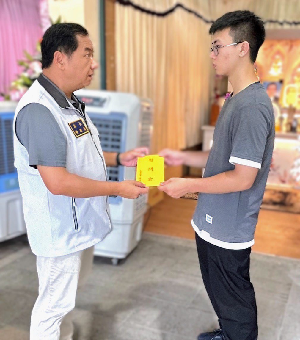 任職於花蓮地區某單位施姓下士父親日前因病不幸辭世,花蓮縣軍人服務站在得知消息後,立即啟動關懷機制,由站長黃鍾昌在單位輔導長吳中尉陪同下於今(7)日1000時前往慰問,向官兵表達最深切的哀悼與關懷之意,並代表中華民國軍人之友社理事長黃呈琮、秘書長簡士偉及花蓮縣各界致送慰問金,由施員領受。