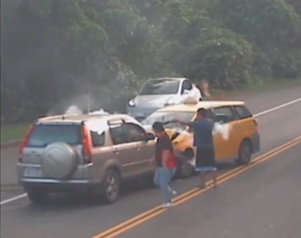 【賴傳媒、記者爆料網 林千允/綜合報導】今(7)日下午5時許,宜蘭縣頭城鎮知名景點大里天公廟前發生一起嚴重車禍,一輛休旅車與計程車不明原因正面對撞,撞擊力道猛烈,導致其中一車瞬間起火。所幸現場民眾反應迅速,及時以滅火器撲滅火勢,避免災情擴大。