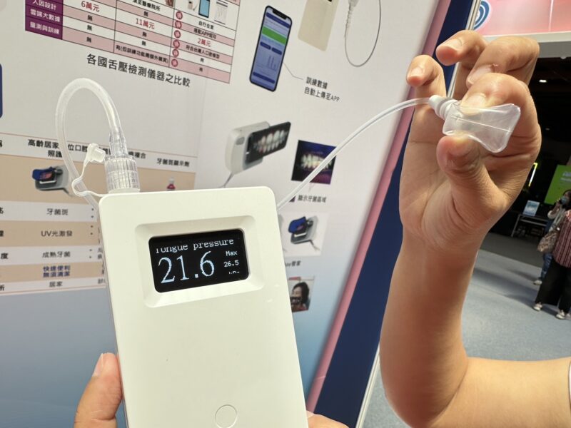 圖/智慧口腔訓練儀為手持式舌壓量測與訓練系統,透過符合國人口型的咬嘴棒即可量測舌頭與咀嚼力,並搭載OLED螢幕顯示即時數據