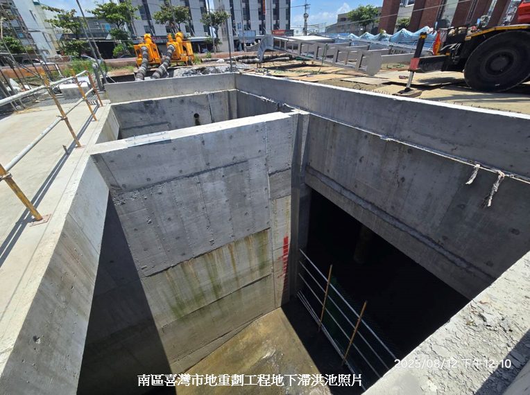 不僅如此,已完工的麻豆工業區兩座滯洪池容納10萬噸蓄水量,九份子重劃區公園兼滯洪池也發揮滯洪和景觀的作用。目前尚在施工中的多個重劃區滯洪池也提早發揮功能,安南區怡中市地重劃區滯洪量9,053噸,永康區的崑大路市地重劃區滯洪量6,205噸,六甲頂醫療重劃市地重劃區滯洪量3,483噸,位於南區喜樹灣裡市地重劃區滯洪量11,800噸,各開發區責成施工廠商平時確實維護工區及週遭排水系統,於暴雨期間加強工地巡查確保水路通暢無虞,協助將周遭排水引流至開發區內,透過滯洪設施及出流管制作為,緩解區域排水負荷,落實開發與防災並重的理念。