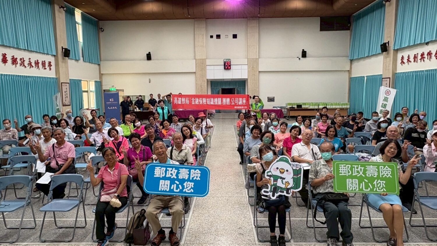 中華郵政(股)公司戮力推廣防詐知識,特於全台各縣市舉辦防詐講座,針對六十五歲以上樂齡儲戶作為邀請對象,發放三千張邀請卡,採志願者報名制。高雄郵局於今(14)日在郵務大樓禮堂舉辦「114年度金融知識講座暨郵政壽險交流座談會」,與110名儲戶進行業務研討及金融知識傳遞。