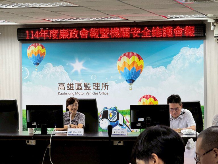 高雄區監理所於20日召開114年廉政暨機關安全維護會報,由所長馮靜滿主持,並敦聘施吉安律師事務所陳昭琦律師擔任外聘委員,偕同各單位一級主管共同探討精進各項預防機先作為,以維護機關廉能形象。