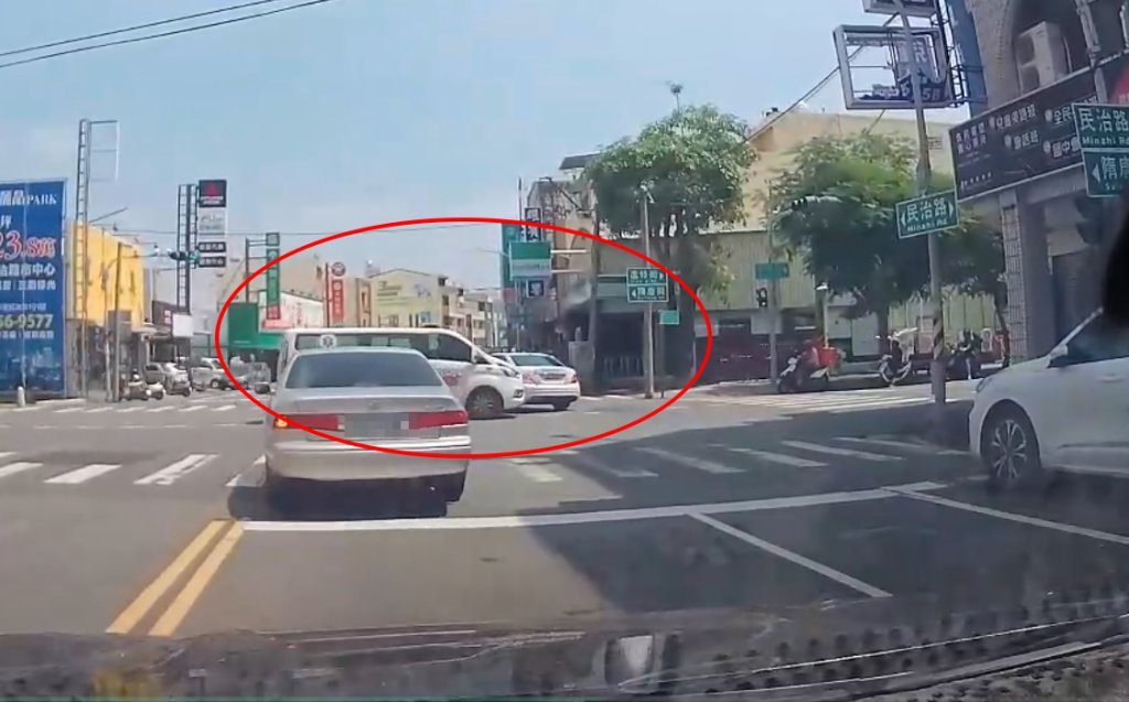 台南新營路口驚險!救護車闖燈與賓士相撞 女駕駛嚇哭。(圖/翻攝 我是新營人臉書)