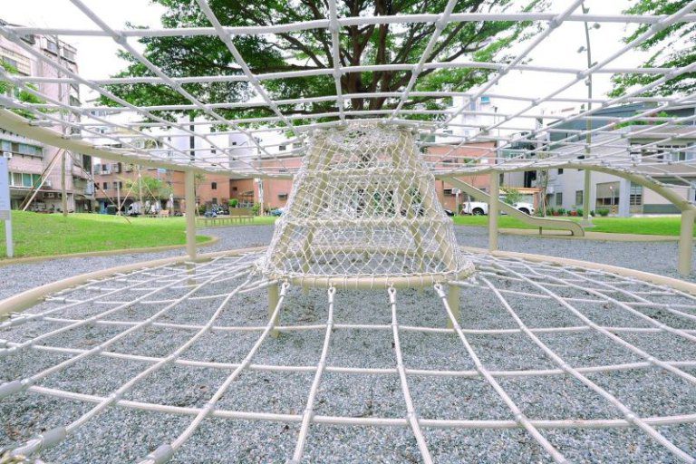 市長鄭朝方親自開箱提到,公園基地面積615坪,打造出「以樹織網」的特色公園,孩子可以盡情地垂直向或水平向攀爬嬉戲,啟發肌耐力與協調性,也能作為吊床般的休憩空間,樹網搭配有溜滑梯,讓孩子在奔放與靜謐之間自由切換,充分放電、自在探索,這座森林系遊戲場是全台少數城市裡最具生態性的社區公園之一,再加上一旁是新社國小,更具有「教科書」示範意義,成為學童日常生活的一部分。