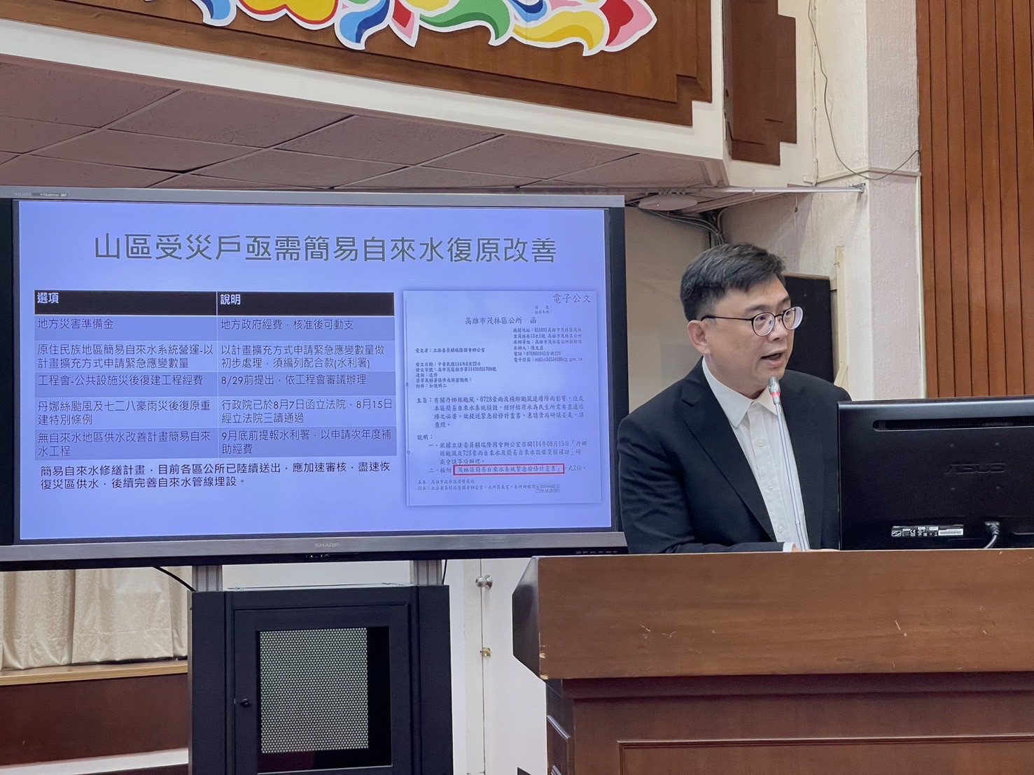 立法院財政委員會與經濟、交通、內政等相關委員會,今(27)日召開聯席會議,審查「中央政府丹娜絲颱風及七二八豪雨災後復原重建特別預算案」。立法委員賴瑞隆在會中要求,那瑪夏民生橋納入特別預算修建,確保當地交通不中斷,另原鄉簡易自來水設施長期不足的問題。728豪雨後,原鄉供水脆弱更加明顯,那瑪夏、桃源、茂林三區提出改善計畫,籲請中央務必加速審查與核定,讓原鄉居民在極端氣候下也能獲得穩定安全的供水。
