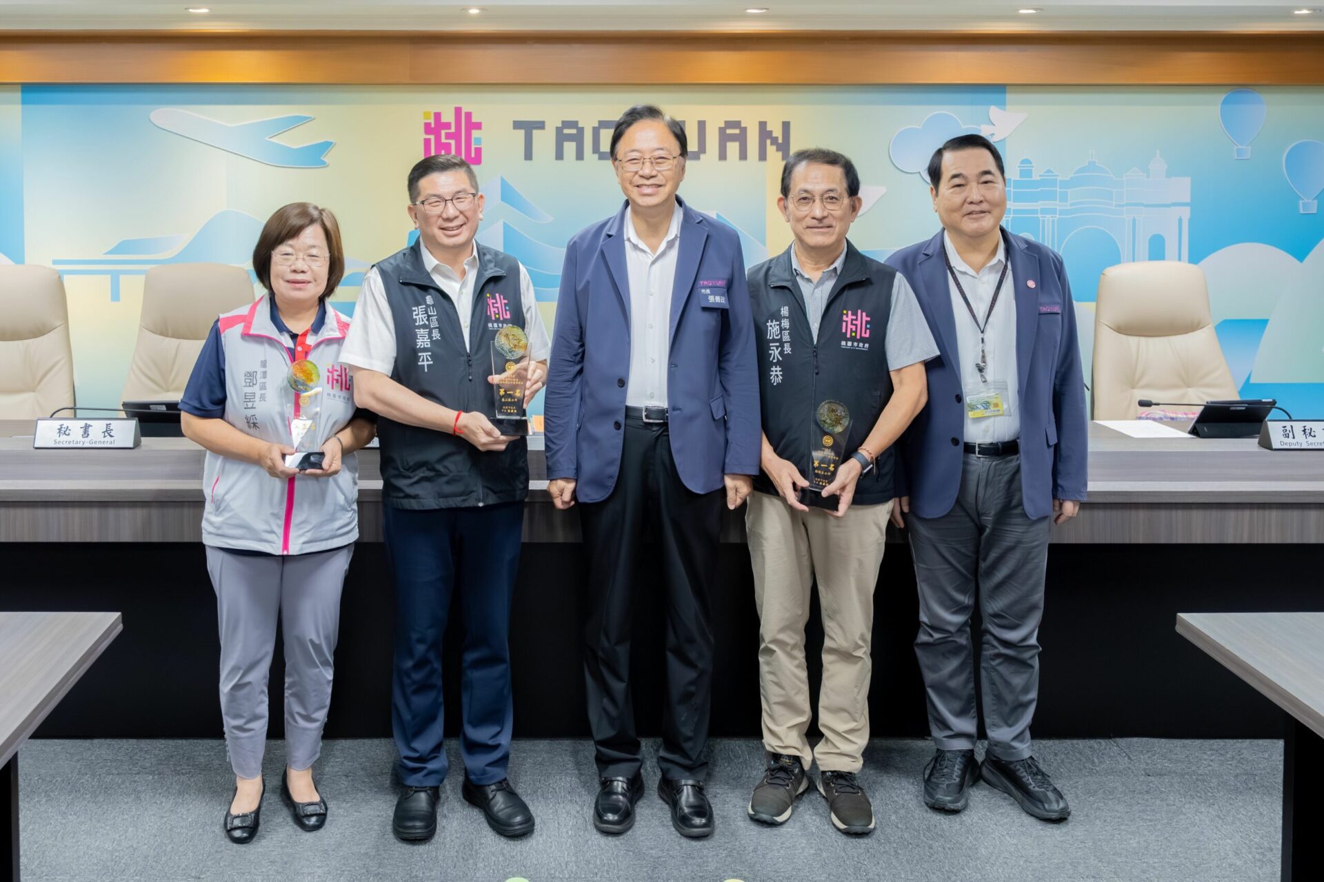 張善政指出,此次頒發表現最傑出的前三名公所,龜山區公所及楊梅區公所並列第一名,分別頒發禮劵1萬元、獎牌1座;龍潭區公所則獲第三名,頒發禮劵6000元、獎牌1座,感謝各公所在守護桃園山林、維護土地安全上的貢獻。