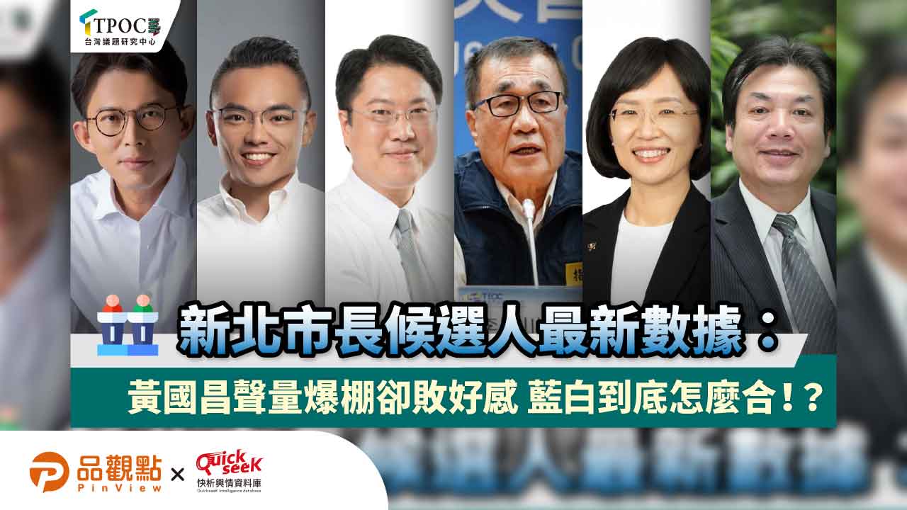 2026新北市長選戰提前升溫,民眾黨主席黃國昌已正式宣佈參選,並拋出「不排斥與藍營共推最強候選人」的消息;同時,台北市副市長李四川也鬆口表示「若要我承擔,不會排斥」,引發政壇與社會輿論熱議。TPOC台灣議題研究中心透過QuickseeK快析輿情資料庫,觀察六位潛在人選的網路聲量,結果顯示黃國昌雖以逾200萬則討論聲量遙遙領先,但好感度並未隨之提升。相比之下,藍綠陣營候選人在支持者擁護下仍維持一定網路好感度,意味著黃國昌若想在選戰中突破,或許需要藍白合作推出最具勝算的人選。