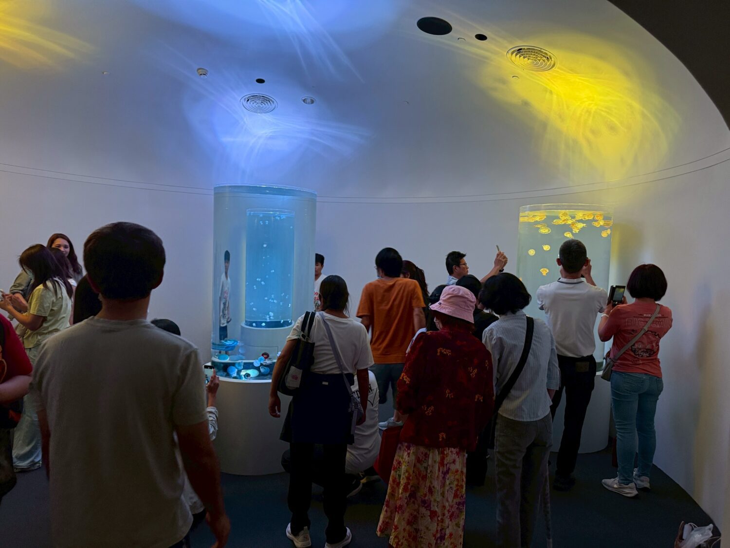 觀旅局長陳美秀表示,台中海洋館採用全國最先進的展示觀念,打破傳統封閉式水族箱設計,館內幾乎全面採取「開放式缸體」,遊客能更清晰觀察海洋生物。這樣的設計,同時也挑戰國人對海洋環境的尊重與愛護。「企鵝展示空間」人氣爆棚,遊客可由下方仰望企鵝悠游的姿態;而館內最受矚目的「水母主題展區」,以全台最大規模、最豐富的水母種類,打造夢幻氛圍,吸引民眾駐足拍照、打卡分享。