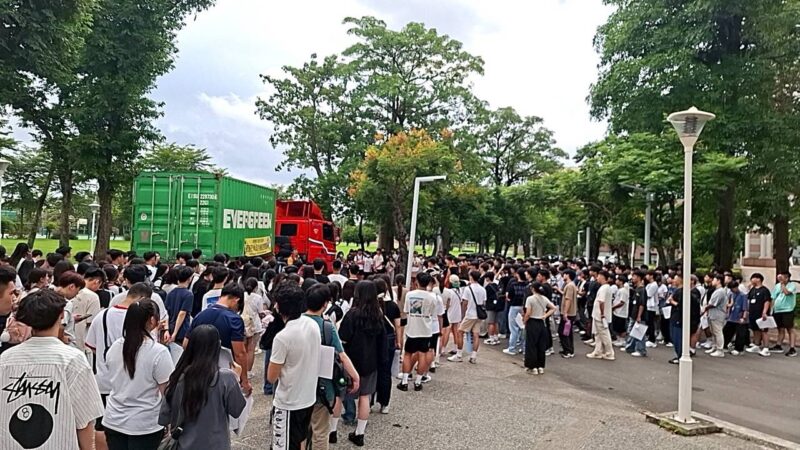 交通安全月的宣導列車來到小港區高雄餐旅大學! 高雄市區監理所結合「高雄市汽車貨櫃CY產業發展協會」,共同辦理停讓文化及「大型車視野死角與內輪差」體驗活動。