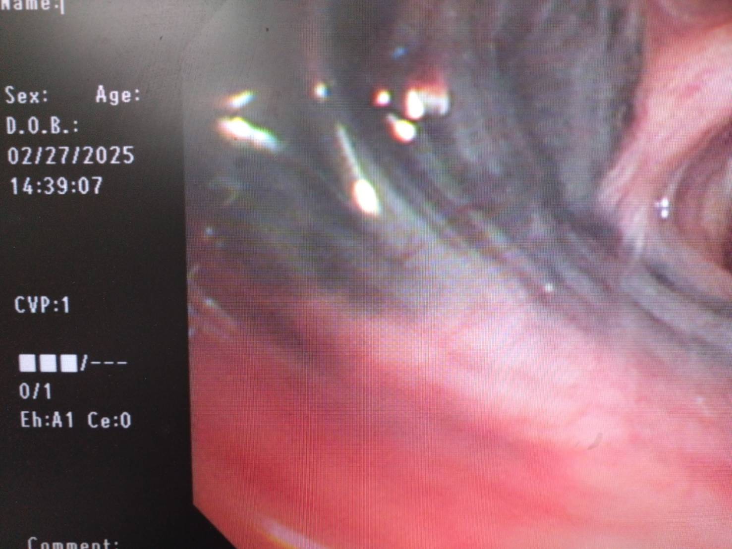 支氣管壁多處出現大片黑色黏膜,醫學上稱為「Anthracosis」黑肺病。圖:北榮桃園分願提供