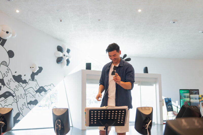 海神看板球星胡瓏貿表示,在球場上透過團隊合作突破對手複雜的防守佈陣,就是他的藝文活動。包括旅外時期,都少有機會參觀藝文場館。除了看展還可以喝咖啡、用餐,內惟藝術中心複合式的經營讓他印象深刻。胡瓏貿雖然笑稱自己沒有藝術天分,但是對於《編織時空—穿梭內惟與外圍》的作品語彙好奇,也在展覽互動區一起編織毛線及寫下許願小卡「海神必勝」。海神高雄之子唐維傑表示,過去在附近的七賢國中就讀,當時球隊的跑步訓練會繞行整個內惟埤園區,43公頃寬廣的園區跑2圈便是一天的訓練量。再度回到內惟,唐維傑表示與過去印象中的樣貌截然不同。最驚喜的是在內惟藝術中心可以看電影,有機會會再來體驗。