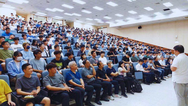 國立高雄師範大學理學院與科技學院於昨(9)日中午12時,假燕巢校區舉辦「半導體學程說明會」,邀請台積電台灣人力資源營運處資深管理師陳昕哲(Sam)蒞臨演講,向師生詳盡介紹台積電與本校合作開設之「半導體學程」內容與修課機制,現場座無虛席,展現師生對學程的高度關注。
