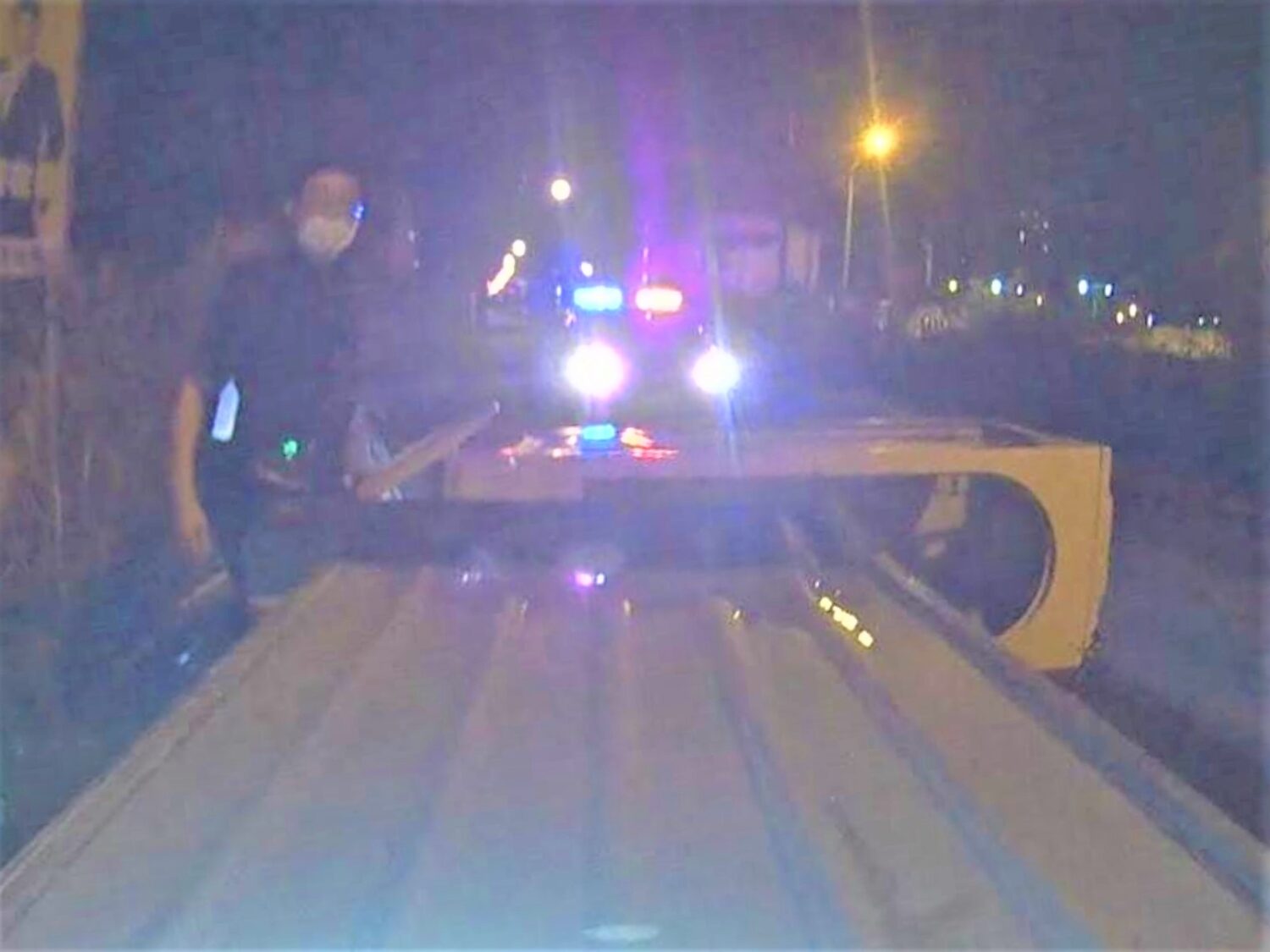 〔今傳媒/記者陳允得嘉義市報導〕嘉義市政府警察局第一分局八掌派出所警員吳俊賢、呂昱諦於日前擔服巡邏勤務時,巡經轄內湖子內健康八街與湖美六街口時,眼尖發現道路中央有兩座遭強風吹倒的工地移動式廁所橫躺在車道上,嚴重影響用路人行車安全,時值晚間視線不佳,為避免危害發生,員警立即下車排除障礙,並以巡邏車警示燈提醒後方車輛注意。