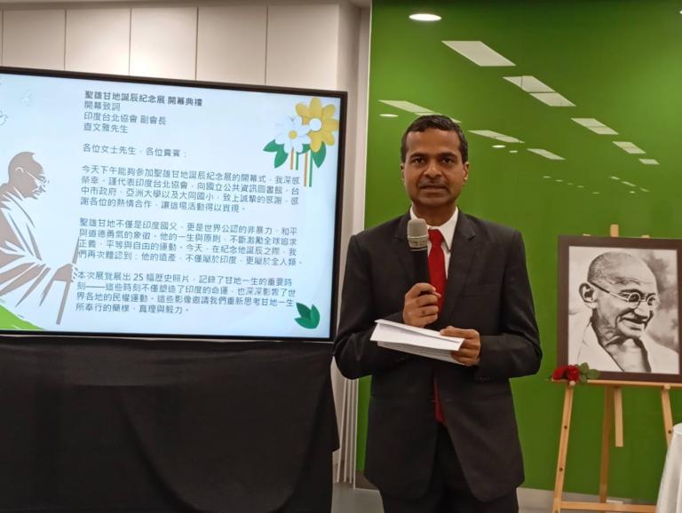 為紀念印度聖雄甘地於10月2日的冥誕,國立公共資訊圖書館與印度台北協會(India Taipei Association)首次合作,從1日起至29日,在國資圖總館4樓閱覽區隆重推出「聖雄甘地誕辰紀念展」。這次展覽目的在透過多元豐富的展品,引領臺灣民眾深入了解甘地非暴力(अहिंसा,ahimsā)哲學思想的深遠影響,並共同緬懷這位對全球和平運動影響至鉅的偉大人物。