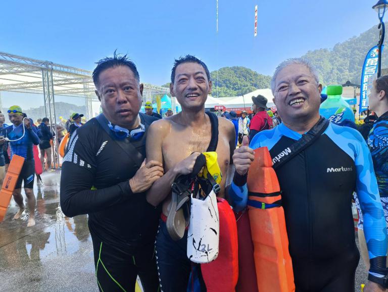 當日清晨,協會成員與萬名泳士一同從朝霧碼頭下水,沿途有志工與救生員守護,確保每位選手安心前進。雖然過程艱辛,但每一位學員都咬緊牙關向前游去,岸上觀眾的掌聲與加油聲不絕於耳,許多人感動落淚。當成員們游抵終點伊達邵碼頭時,臉上滿是汗水與笑容,卻也閃耀著堅毅與自豪。葉麗惠激動地說:「雖然中途很累,但聽到大家加油的聲音,我就不敢停下來。我真的完成了自己一生最大的挑戰。」視障泳士涂儼廷感性表示:「雖然我看不見風景,但我感受到日月潭的溫度,還有大家的支持,這份感動將伴隨我一生。」