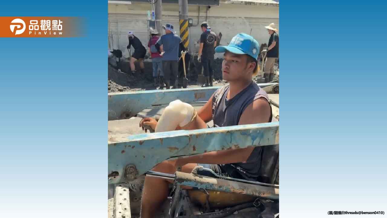 這位「單腿超人」駕駛山貓參與救災的畫面,經由農藝網紅林柏賢在社交平台Threads上分享後迅速傳開。影片中,這位男子右腿裝有義肢,但他神情專注,熟練地操作山貓在災區中鏟土。他那堅定的眼神和精湛的技術,讓無數網友為之動容。