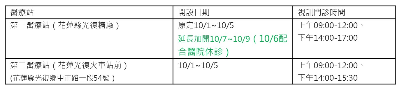 同時,遠傳5G遠距診療門診隨同花蓮慈濟醫療站,原訂開設至本周日(10/5)為止,但考量當地仍有不小就醫需求,且部分災民行動不便,或沒有交通工具,難以往返醫院,因此特別延長光復糖廠醫療站遠距診療門診至下周四(10/9)。