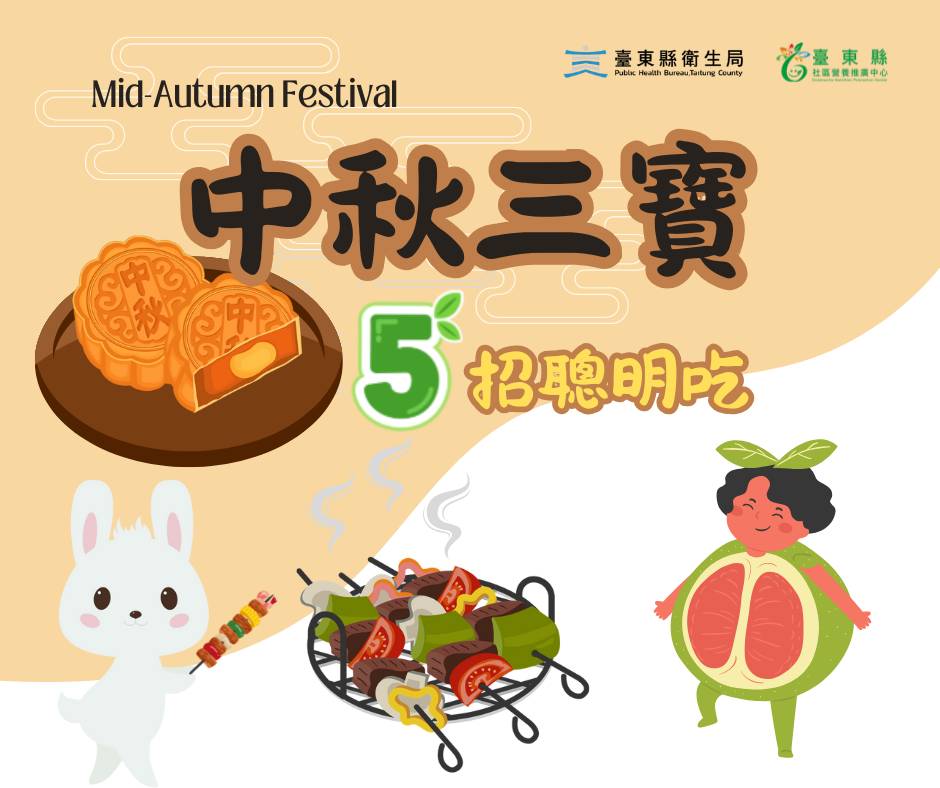 中秋佳節將至,是全家人享用應景美食,象徵團圓與豐收的重要節日,月餅、柚子與烤肉是家家戶戶不可少的應景「三寶」,臺東縣衛生局社區營養推廣中心大公開5招中秋飲食技巧,維持健康不發胖的訣竅,讓您快樂地度過中秋美食饗宴!