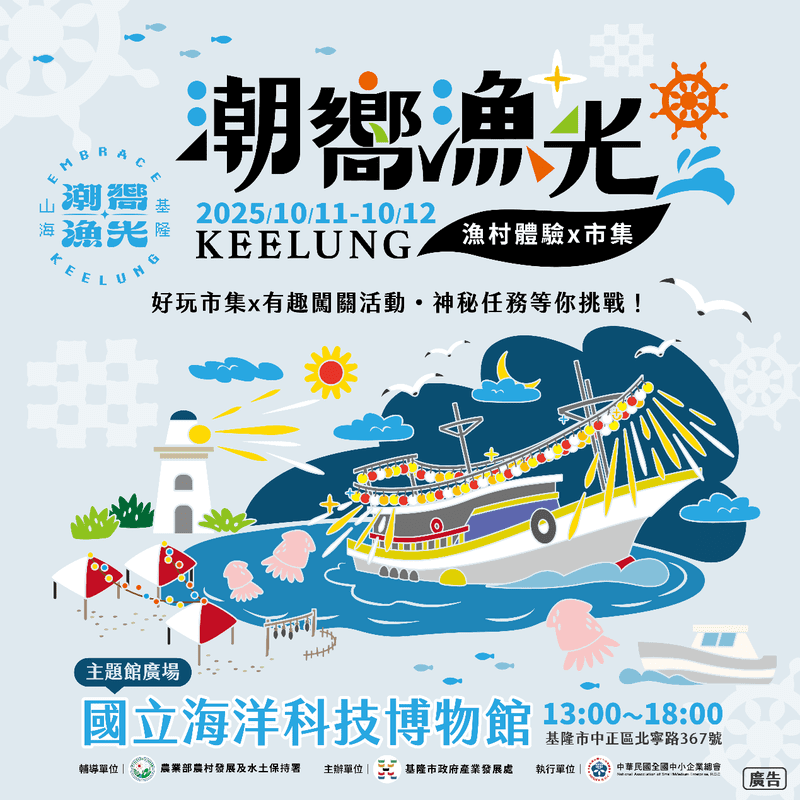 「基隆潮嚮漁光市集」僅此兩天限定,邀請大家一同走進漁村,體驗漁光交織的獨特魅力。更多資訊可至 「潮嚮・山海基隆」 與 「農來作伙農情交流平台」 粉絲專頁查詢。