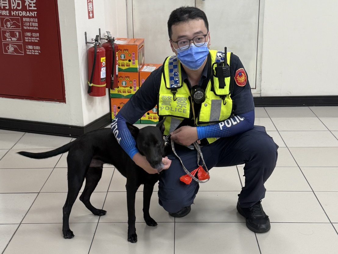 員警到場後很快的駕馭了黑狗不再亂跑,迅速查詢網路寵物協尋平臺並無相同特徵的尋犬啟事,員警向附近的店家商借了牽繩,牽著黑狗走訪周遭住戶並詢問是否有犬隻走失;在花費20分鐘繞了一大圈仍無所獲後,員警靈機一動,撥打電話洽詢動物醫院確認有營業後,隨即將黑狗帶往掃描晶片,順利查出黑狗的飼主是46年次的范姓男子;范男接獲員警的電話通知,才驚覺家裡的「小黑」不知何時偷跑出門,非常感謝員警的幫忙。