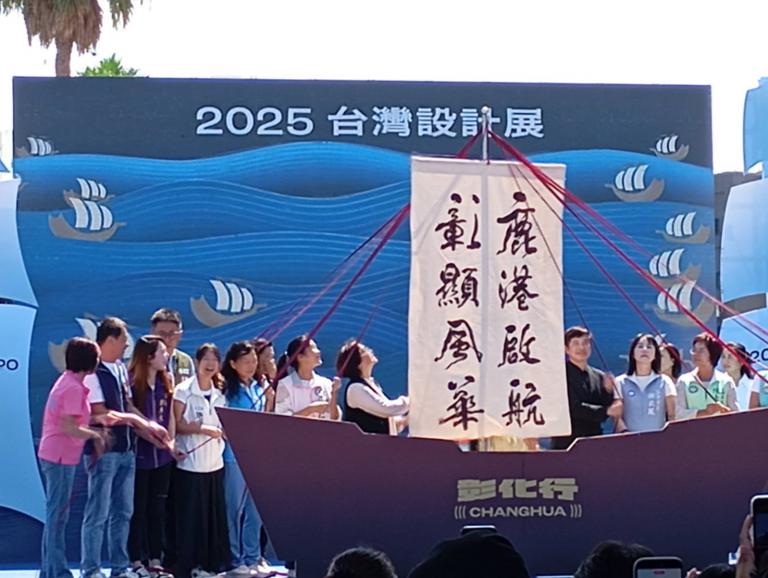 ▲台灣設計展即將盛大登場,5日在鹿港生態休閒公園廣場舉辦「2025台灣設計展鹿港搶先看」,由縣長王惠美及台灣設計研究院張基義院長及與會貴賓為鹿港展區試營運揭開序幕。(圖╱記者孔亮云翻攝)