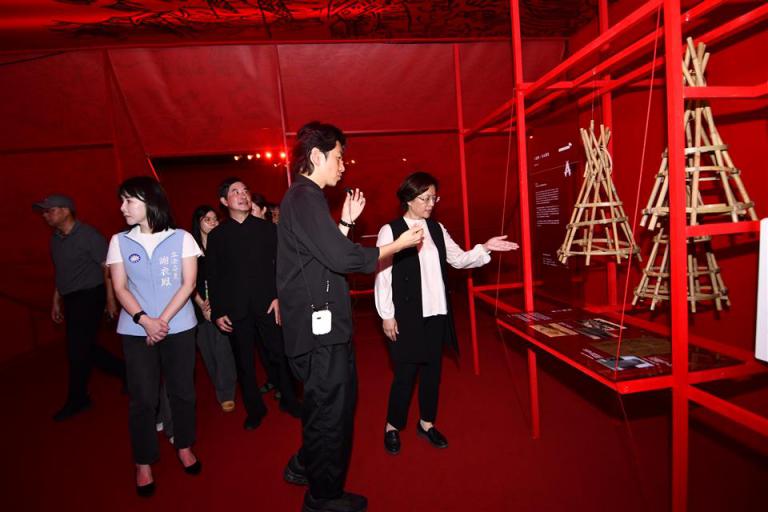 王縣長指出,鹿港展區共有三個主要展場:第一個是「文化行」,把傳統音樂與當代音樂結合,透過《殿氣現場》與林強老師策劃的《殿氣LIVE》,賦予音樂生命。第二個是「平安行」,從日常生活器物出發,展出彰化獨有的品牌與工藝精神。第三個是「圓夢行」,以交通、建設與生活設施為主題,展現彰化的過去、現在與未來。