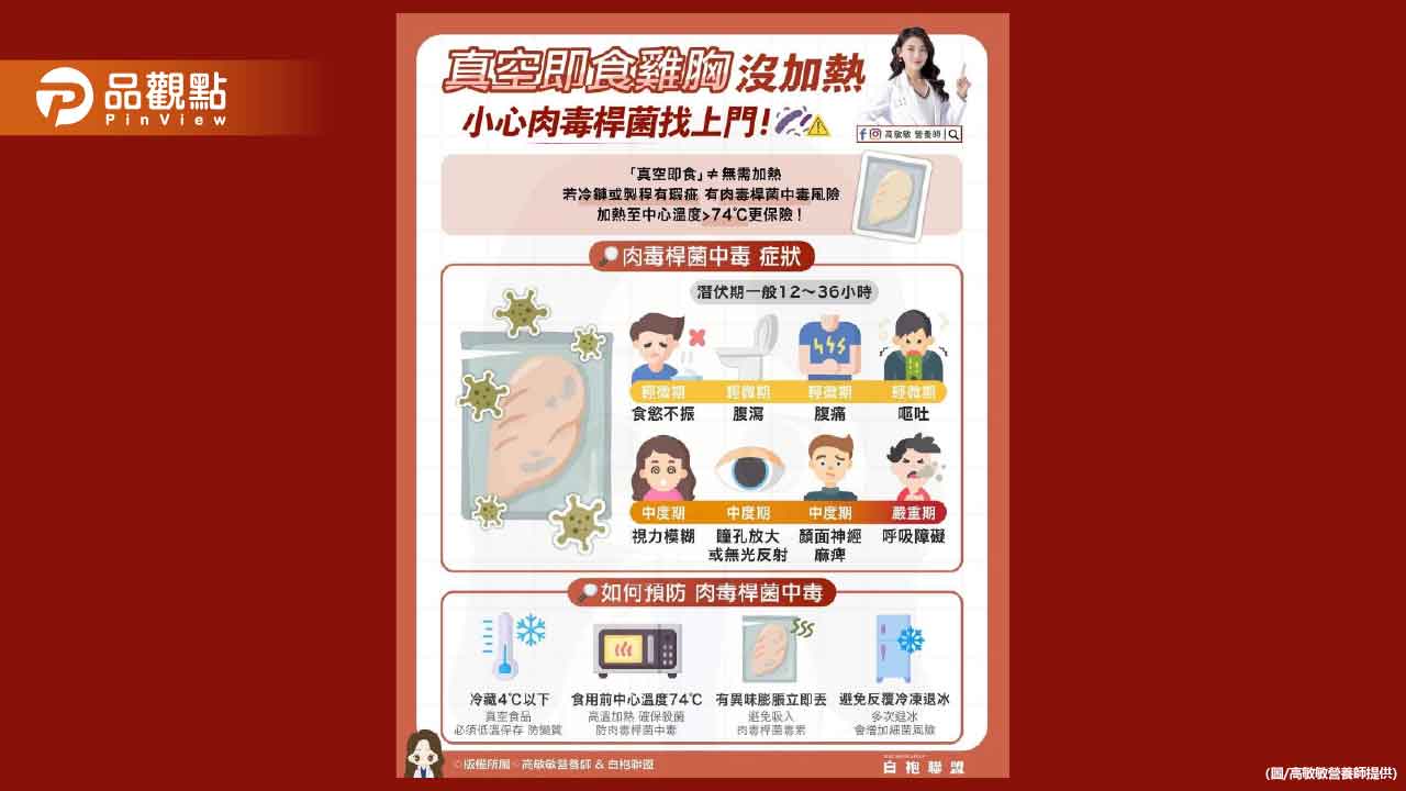 增肌減脂好夥伴,真空即食舒肥雞胸,不論忙碌上班族還是健身控都愛用它補蛋白質,方便又快速,很多人看到包裝上寫著「打開即可食用」就直接吃,但如果製作過程有衛生疑慮+食用前沒充分加熱,就可能有肉毒桿菌毒素中毒的風險。