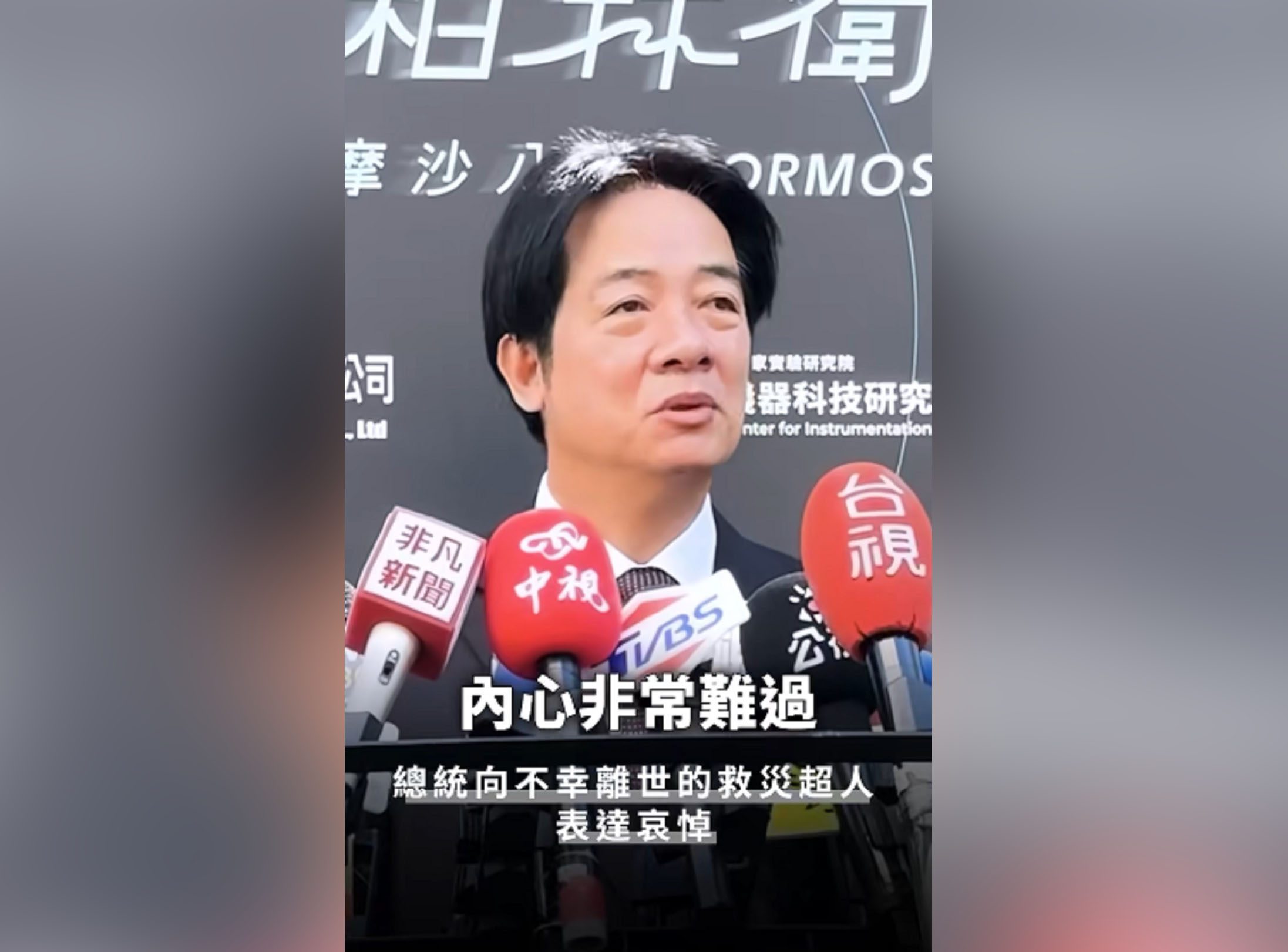 賴清德說,他已請衛福部加強後續受傷者的照護,許多熱心的台灣人用行動展現最堅韌的良善力量,深深感謝所有人的奉獻與勇氣。