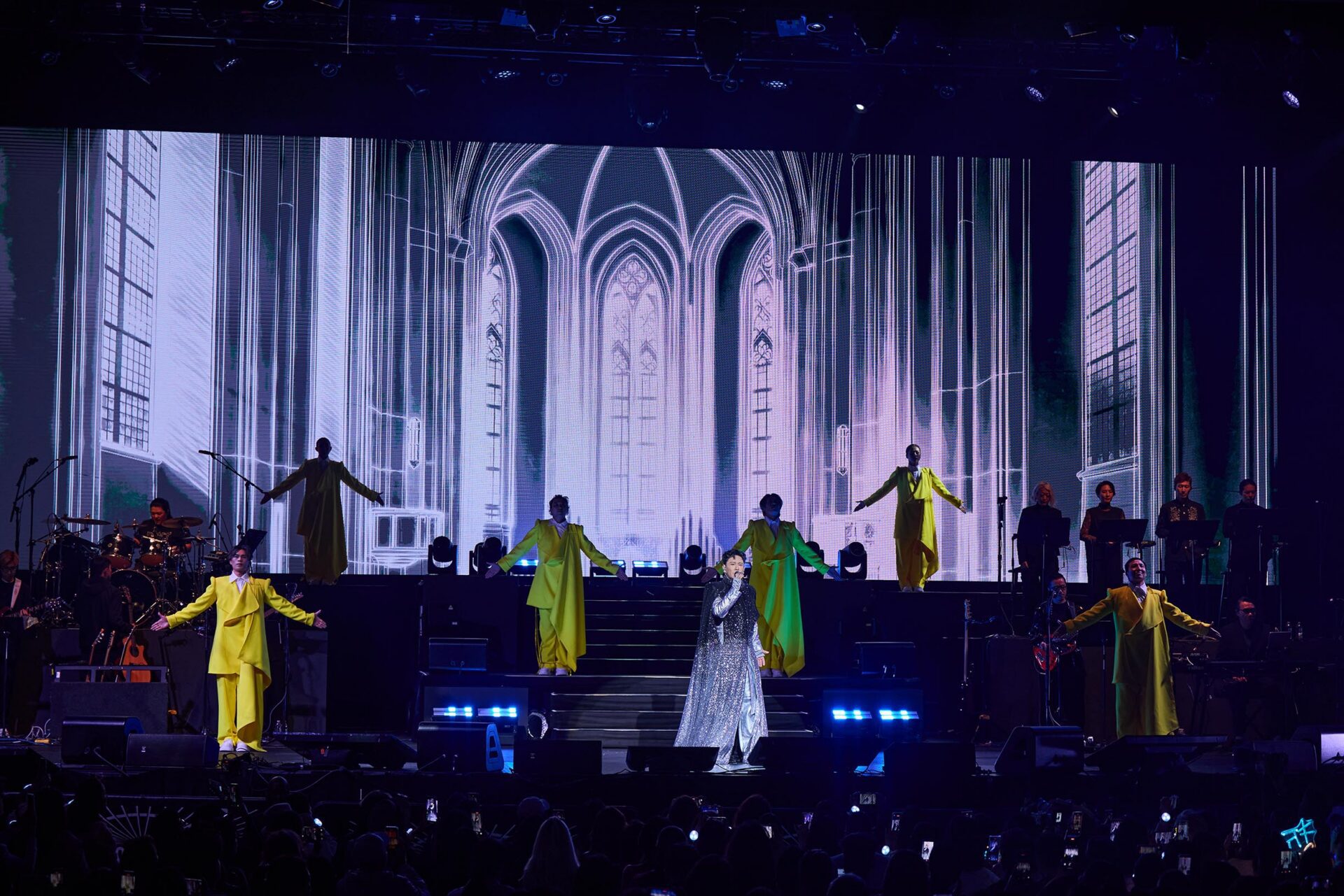 壓軸曲〈難以抗拒你容顏〉時,大螢幕播放他在紐約街頭的旅行畫面,中央公園陽光、街角咖啡香與偶遇彩虹的影像,引爆粉絲驚呼,他笑說:「是不是以為是key上去的彩虹?那天真的超幸運!」全場粉絲齊聲大喊:「你就是晴天!」最後進入經典曲〈太想愛你〉全場大合唱,氣氛感人。